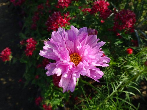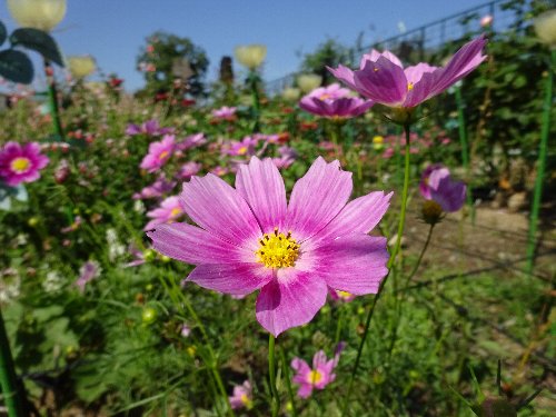 これもコスモス、ダブルクリックという八重咲きの品種です。このようなやや変わったコスモスがローズガーデンでご覧いただけます♪