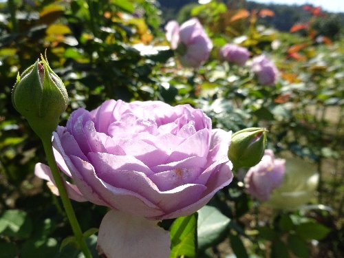 そんな慌ただしい園内では、アメジストセージやバラがまだまだ綺麗に咲いていますので、ご紹介しますね♪