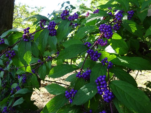 実りの秋、この紫色の愛らしい粒々は紫式部といいます。紫色の美しい実から、平安時代の美女・紫式部の名を付けられたという説があります。シャクナゲの森の池の脇にひっそりと生えています♪