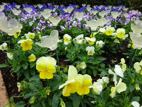 園内の花壇もパンジー・ビオラに着々と入れ替えていってます。今年の私のお気に入り、ビオラ おまつりももか。ラベンダーピンクと黄色の2色咲きで、株によって色幅のある所が気に入っています。