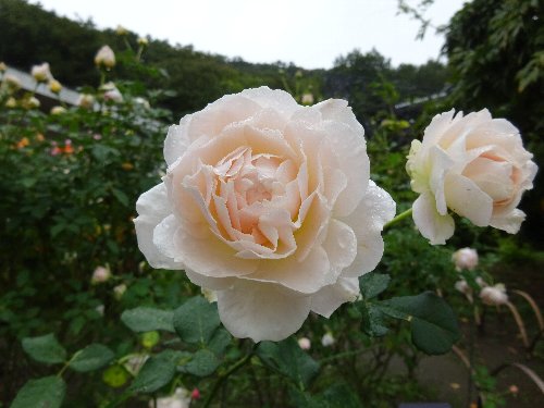 秋バラも長雨に負けず美しく咲いています!こちらはいろはといって裏弁が白くなるユニークなバラ。和洋どちらのお庭にもなじみますよ。