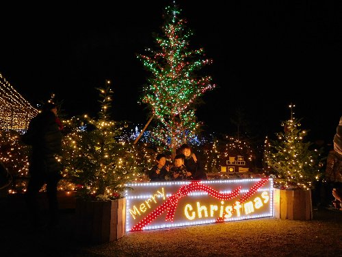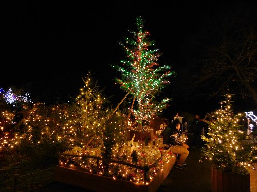 クリスマス直前の園内では、お客様もイルミネーションも植物たちさえも