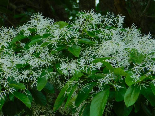 こちらも園内に1本、しゃくなげの森で花を咲かせているヒトツバタゴです。別名ナンジャモンジャ。