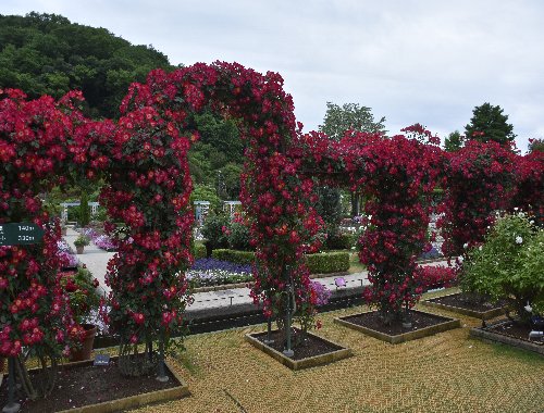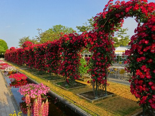 先日ご紹介したバラの回廊、花盛りとなりました!!