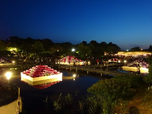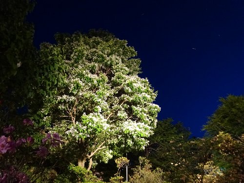 太陽光の下で見る植物はもちろん美しいのですが、ライトアップされた植物も、自然のものと人工のものがうまく調和した特別な美しさが感じられます。