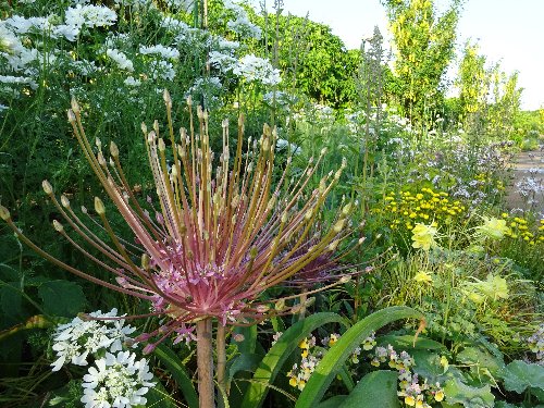 アリウム「シューベルティー」。草丈は40センチぐらいの低めですが、星のような花がこれから咲き出すと存在感抜群になりそうです!