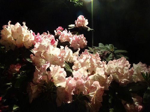 スポットライトを浴びているシャクナゲ。ここはおすすめスポットです。