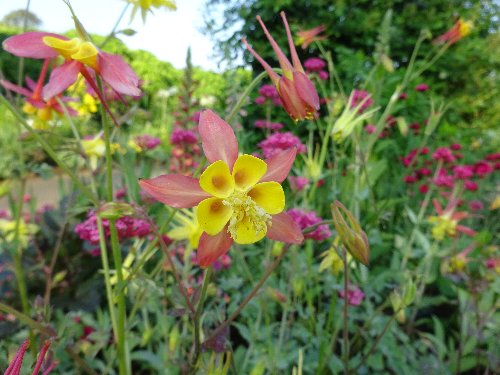 オダマキ「テキーラ サンライズ」。色も形も種類豊富なオダマキですが、これは赤と黄色の2色咲きでとっても可愛いです!