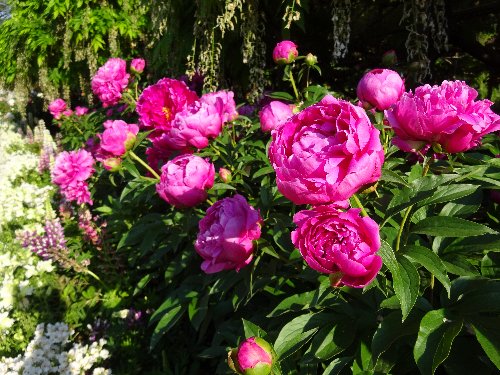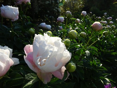 白藤トンネルの脇では、私が主役よと言わんばかりにシャクヤクが咲き競っています。