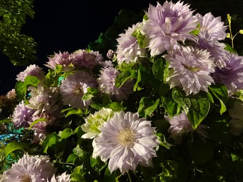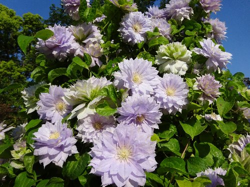 クレマチス「ベル オブ ウォーキング」淡い藤色で八重咲きの美しい花です。