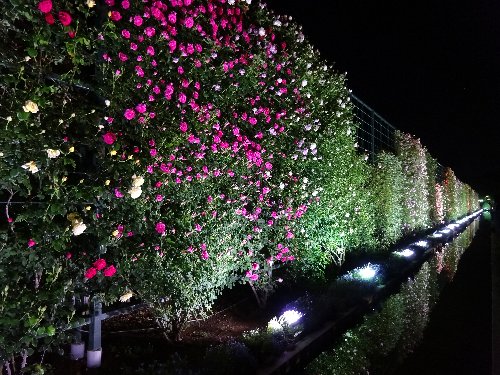 ライトアップ自体まだ見たことがないよという方、藤はあるけどバラのライトアップはまだ見たことがないよという方!今年は5月13日日曜日まで夜の部を実施していますので、この美しさを味わって頂ければなと思います♪