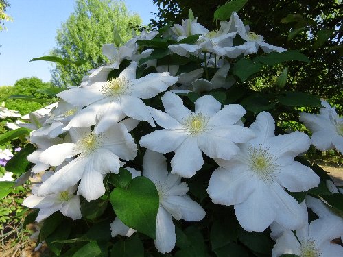 大輪系のクレマチスも綺麗です。純白の花びらが美しい「マダム バンホーテ」。