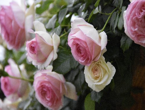 白や淡いピンクなど、やわらかな色合いのバラたちのアーチです(+_+)