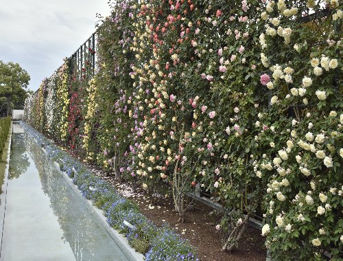 バラのスクリーンの東端に位置する「バラの虹」は上の部分が繋がるまであと少し!