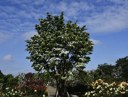 ローズガーデンではバラのほかに、ヤマボウシも見頃を迎えております(*^_^*)
