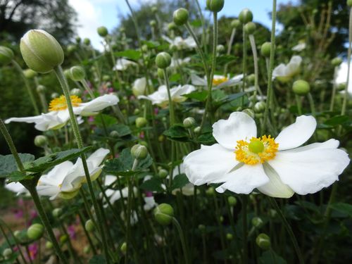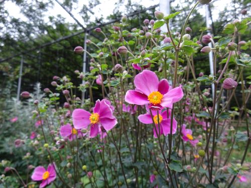 シュウメイギク、白花も咲き出してきました。こちらはランナーを伸ばしてそこそこよく殖えます!ここではピンクより白の方が少し遅咲きみたいです。
