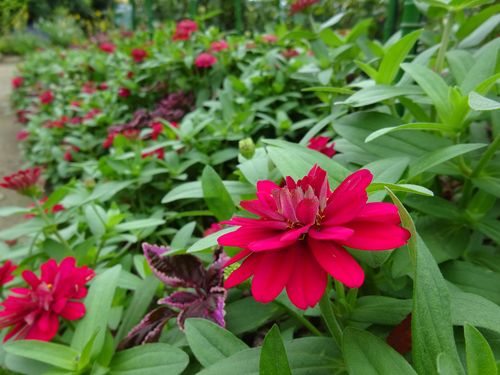 こちらはキク科のジニア、百日草ともいいます。プロフュージョンというこの種類は、花がら摘みをしなくてもどんどん咲いてくれる優秀な夏のお花ですよ!