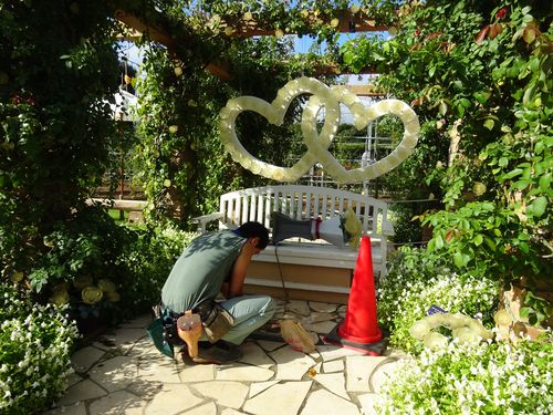夜遅くまでイルミの取り付けを頑張るM田くん!