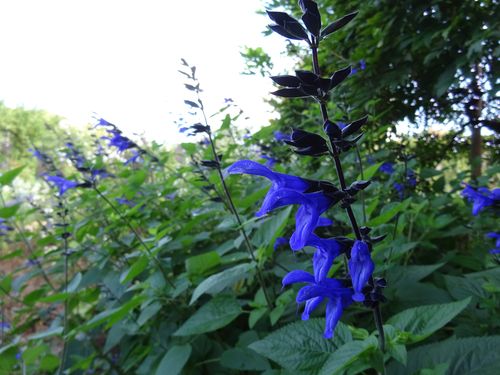 繁殖力旺盛といえばこちらも…メド―セージで知れ渡っていますが、本当はサルビア ガラニチカといいます。濃い青い花に黒いがく、とってもおしゃれです…が!これも地下茎でよく殖えます(^^;