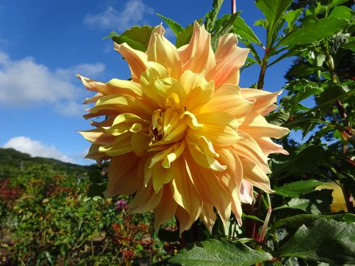 大輪系のダリアがよく咲いています。暑いと花もすぐ終わってしまいますが、涼しくなってきたので1輪が長く咲くようになりました♪