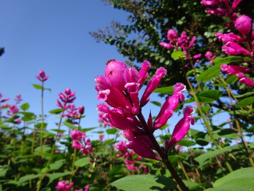山側の花壇では、アメジストセージと共にピンク色の花を咲かせるローズリーフセージが見頃を迎えています。葉の形がバラの葉に似ているところから、ローズリーフセージと呼ばれるようになりました。