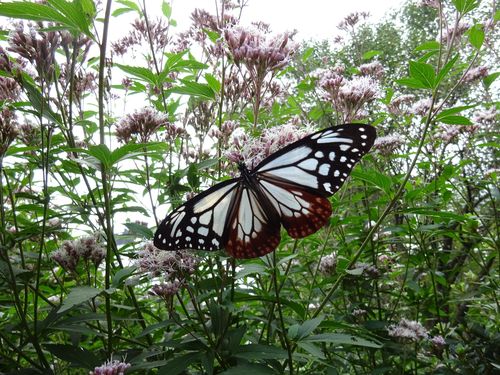 フジバカマも満開で…今年もアサギマダラという蝶が遊びに来てくれました♪翅の水色の部分を浅葱色と表した為、アサギマダラと呼ばれます。