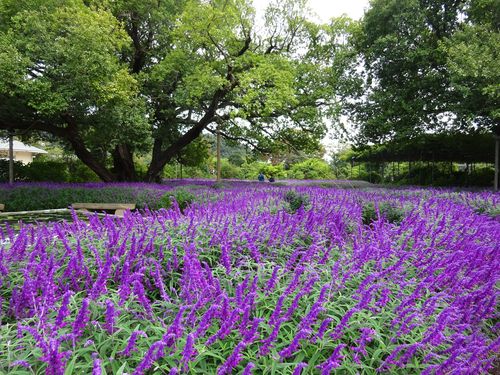 アカメヤナギのあるお休み広場も見渡す限りのアメジストセージ。ビロードのようなお花なので、本当に大きなじゅうたんを広げたようですね♪