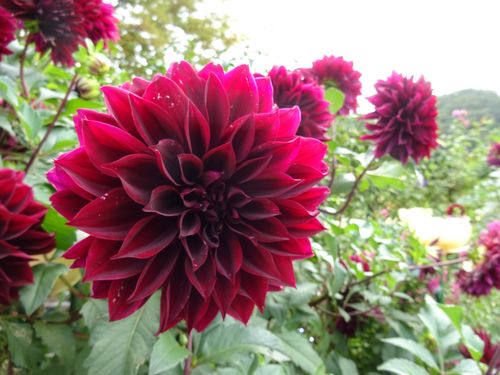 ダリアも涼しくなり花数が増えました。ローズガーデンでは存在感のあるこの花が、バラに負けず目を引きます。