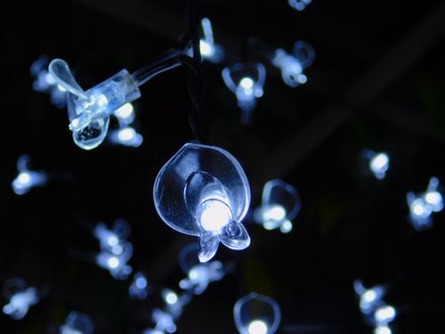 アクリルハウスの中にはポインセチアが飾られています。夜になると保温と装飾を兼ねて灯りが灯されます。