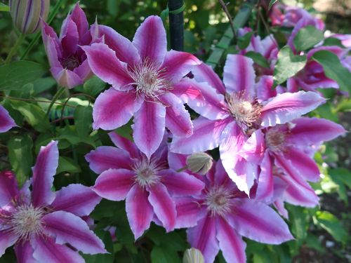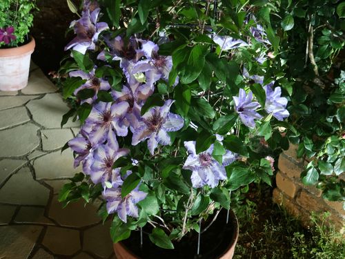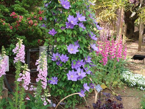 山側通路よりクレマチスのH.Y.ヤングと左右にはジキタリス。