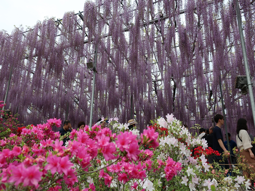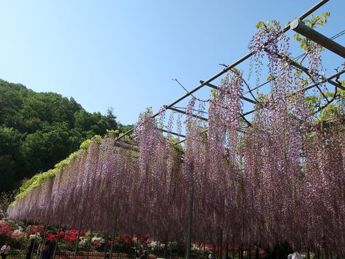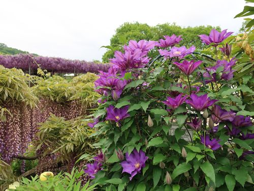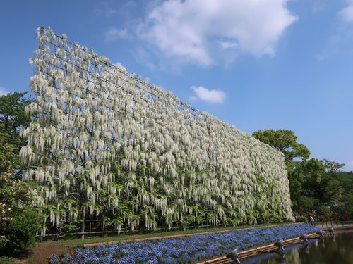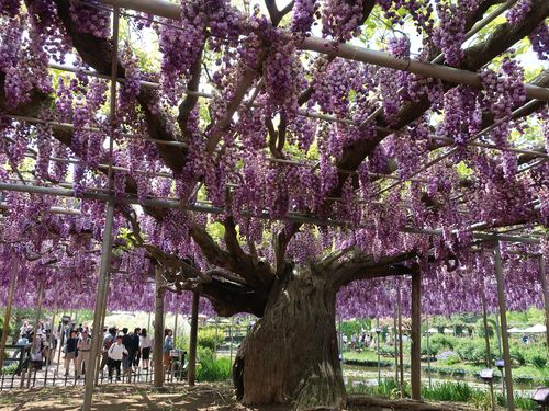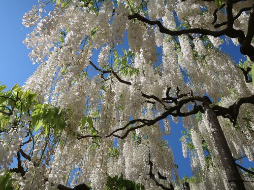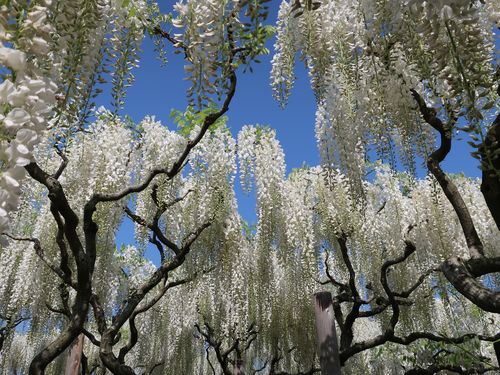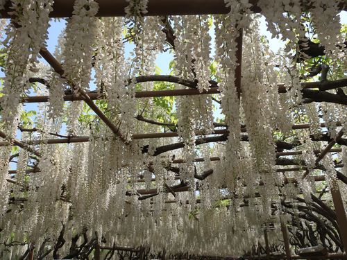 園内では大藤、大長藤、八重藤、白藤が満開を迎えております。