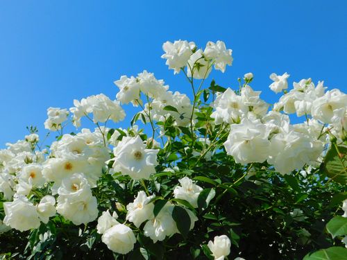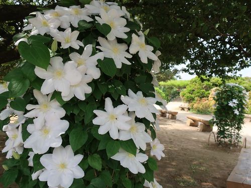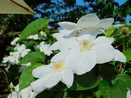 クレマチスも見頃です。白色の大輪花、マリーボワスロ。咲いた時の存在感は群を抜いています。