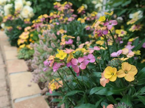 1株で何色の花も楽しめるエリシマム スプリングパーティー。環境の変化で花色も変化します。