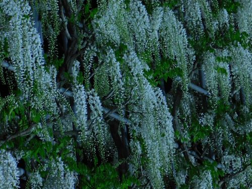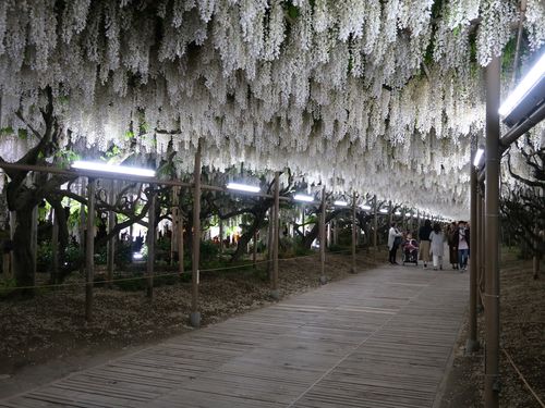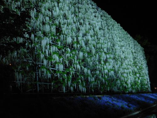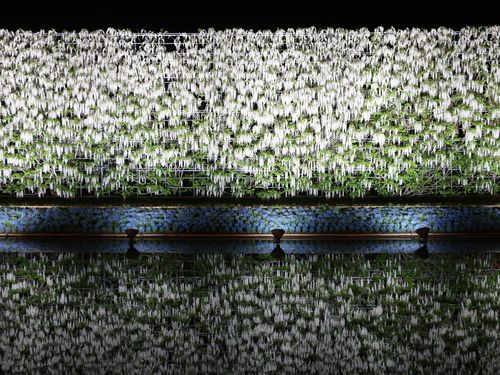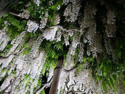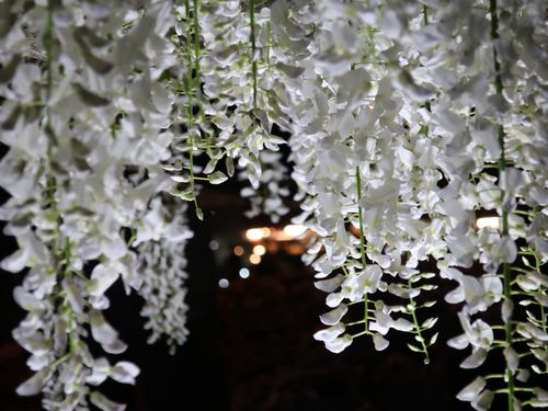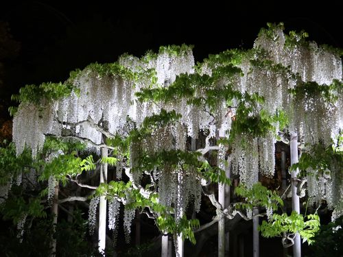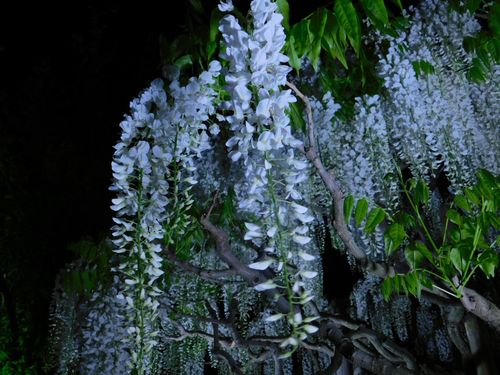 白く輝く藤。昼間とは違った美しさをぜひご覧ください。