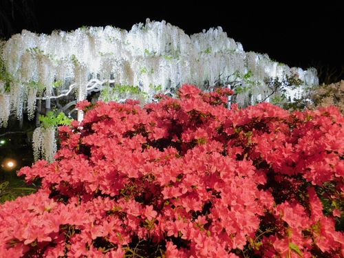 夜になると、藤だけではなく さまざまな花たちがライトアップされます。