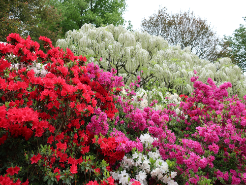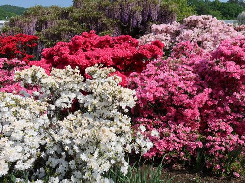 この様に白の庭木藤とつつじを楽しめるスポットや、