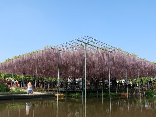 80mもの間、頭上を白藤で埋め尽くされる「白藤のトンネル」です!
