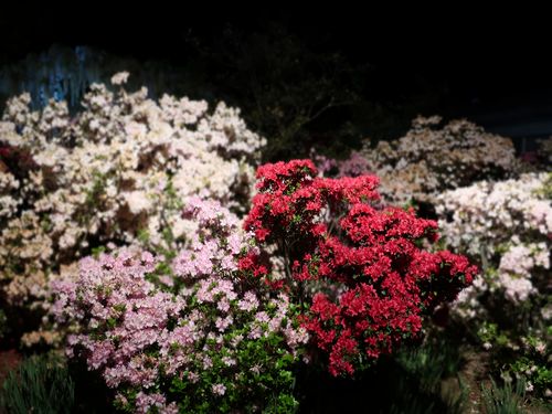 ツツジの花もライトアップされると、ガラッと印象が変わります。