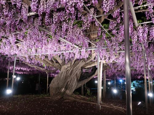 昼とは違った景色、空間を楽しめる藤のライトアップ。一見の価値ありです!