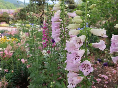 ジギタリスとオルラヤ、バラもあわさって花束のような豪華さです!
