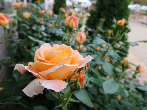 バラも見頃を迎えました。フラワーステージのカクテルは早咲きなのでもう満開に近いですね。