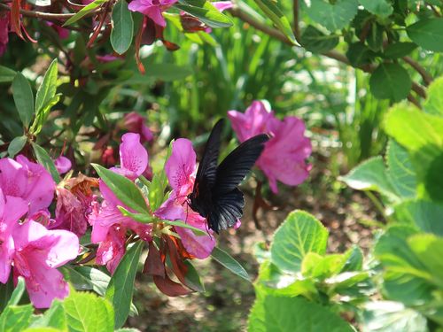オオムラサキにカラスアゲハが蜜を集めに来ておりました♪