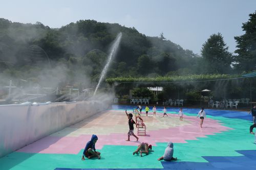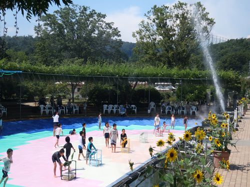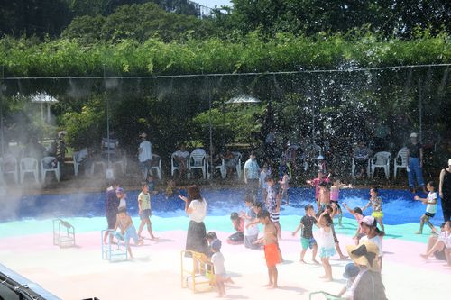 園内水遊びエリアもたくさんの人で賑わっております!