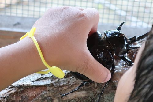 いきなりでっかいカブトムシを鷲掴み2連発です!