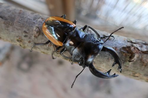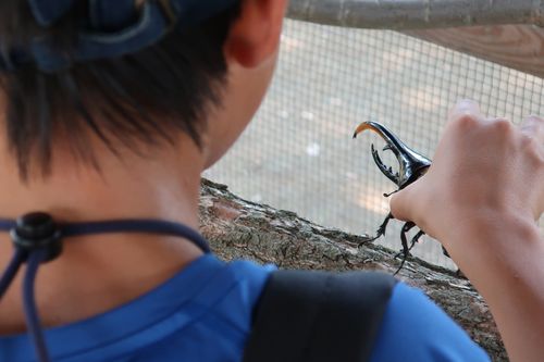 カブトムシだけでは無く、こんな立派なクワガタムシとも触れ合えます。