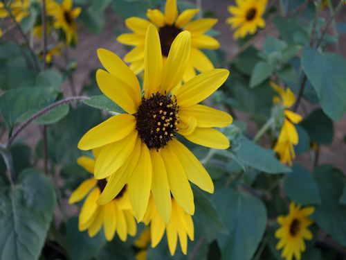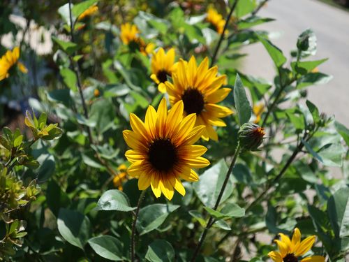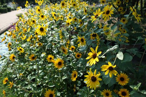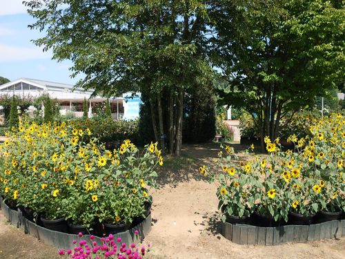 熱帯スイレンの近くにはたくさんのヒマワリ‼