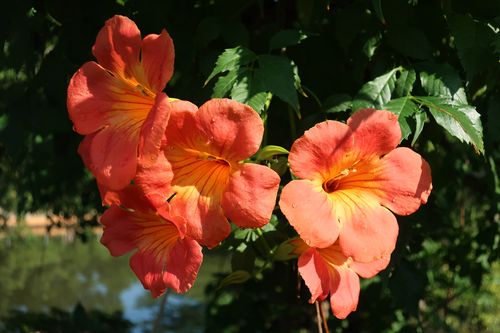 鮮やかなオレンジ色が目を引く、ラッパの様な花の形のノウゼンカズラです。