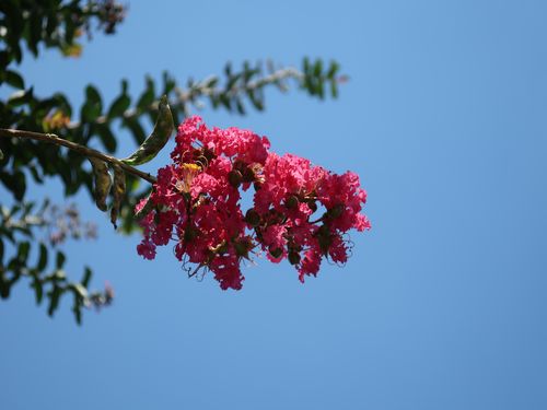蝉時雨の中、ふと青空を見上げると真っ赤なサルスベリが...
