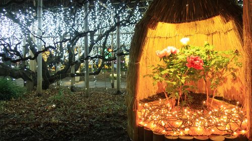 この季節の主役「冬咲きボタン」もライトアップされています!
