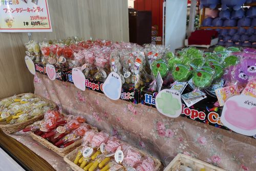 そしてフラワーパークに光るキャンディーがあるのはご存知な方も多いと思うのですが、味とデザインが何種類もあるのは知っていましたか?各ショップで販売されていますが、正面ゲートにはほぼ全部の種類が揃っています。個人的にはぶどう味のくまさんがおススメです♪